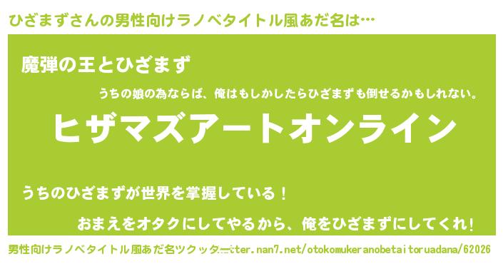 | ヒーロー風カッコイイあだ名 | 『スーパーヒザマズ』『仮面ヒザダー』 |