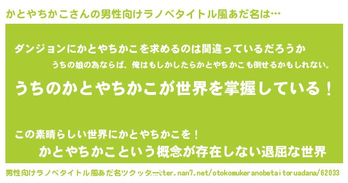 | 意味不明あだ名 | 『とにかく怪しいかとやちかこ』 |