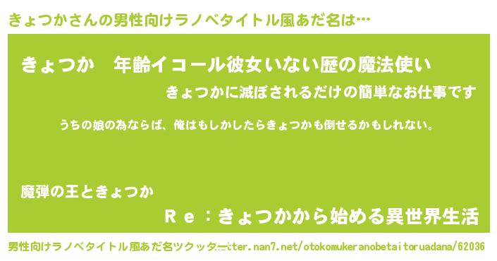 | 胡散臭い通販商品みたいなあだ名 | 『運命の人と巡り会える高級そうな壺…その名も「きょつか」』 |