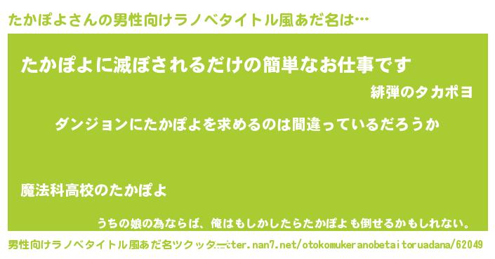 | 女子向けラノベタイトル風あだ名 | 『たかぽよは平凡を望む』 |