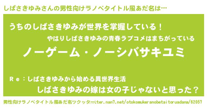 | 女子向けラノベタイトル風あだ名 | 『死神しばさきゆみの再婚』 |