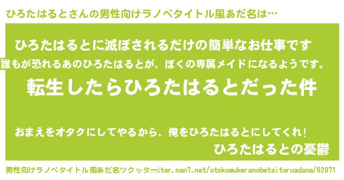| 胡散臭い通販商品みたいなあだ名 | 『モテモテ間違いなし霊験あらたかなお札…その名も「ひろたはると」』 |