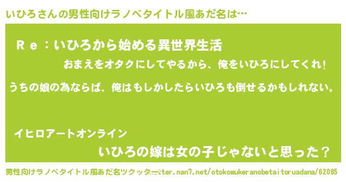 | 意味不明あだ名 | 『いひろフォーエバー』『自称いひろ』 |