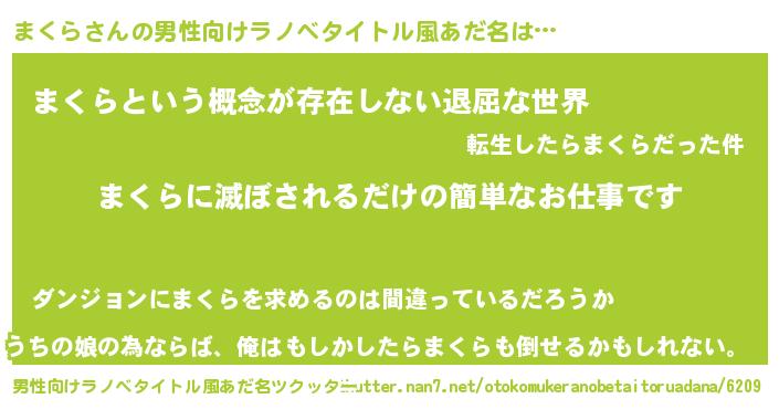 | ヒーロー風カッコイイあだ名 | 『ネオマクラ』『ウルトラまくらマン』 |