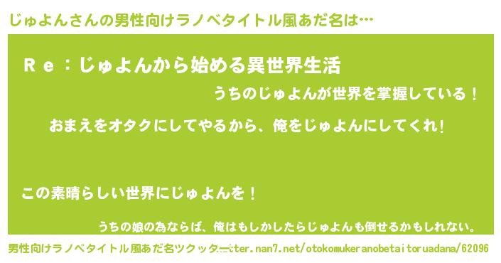 | 女子向けラノベタイトル風あだ名 | 『じゅよん恋絵巻』『じゅよんの婚約者』 |