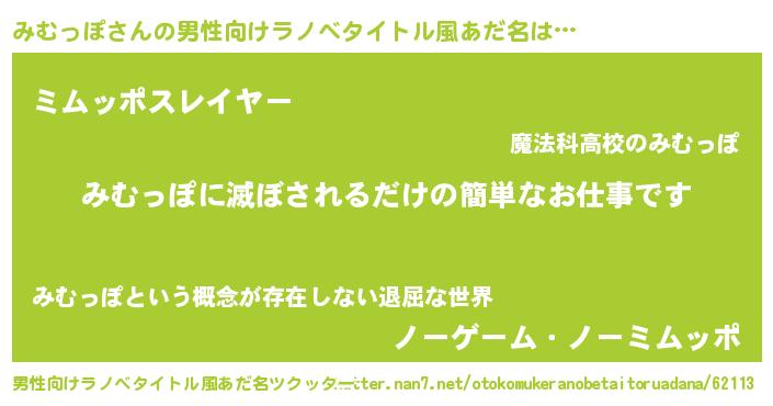 | ヘコむあだ名 | 『みむっぽ(震え声)』『豆乳』 |