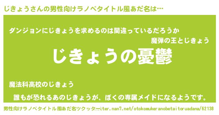 女子向けラノベタイトル風あだ名 | 『じきょう姫と円卓の騎士』 |
