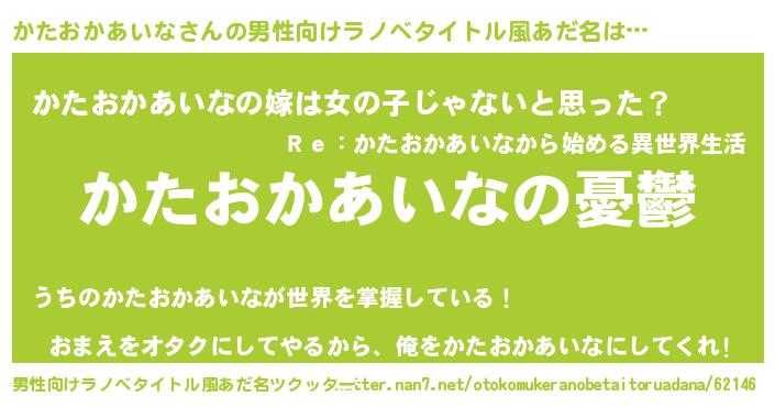 | 女子向けラノベタイトル風あだ名 | 『かたおかあいな姫と円卓の騎士』 |