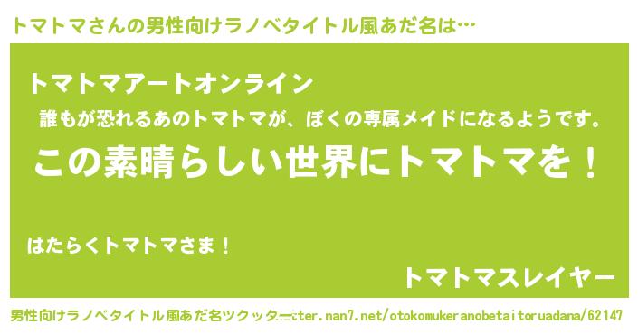 | 意味不明あだ名 | 『住所不定無職トマトマ(40歳)』 |