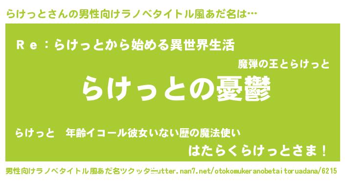 | 胡散臭い通販商品みたいなあだ名 | 『必ず成功する霊験あらたかなお札…その名も「らけっと」』 |