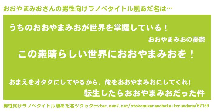 | 意味不明あだ名 | 『住所不定無職おおやまみお(86歳)』 |