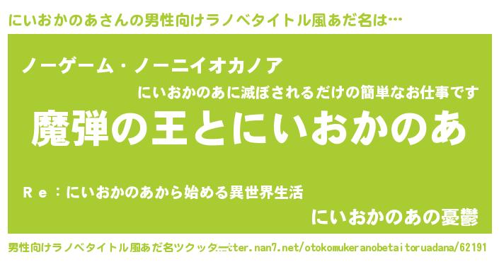| 意味不明あだ名 | 『住所不定無職にいおかのあ(59歳)』 |