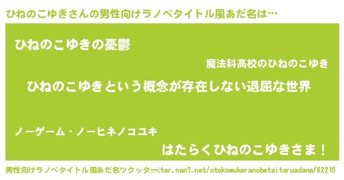 | 女子向けラノベタイトル風あだ名 | 『異世界で失敗しない100のひねのこゆき』 |