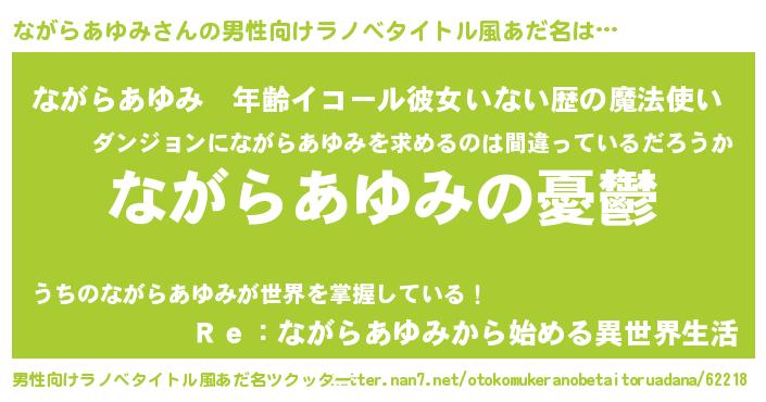 | 女子向けラノベタイトル風あだ名 | 『(仮)ながらあゆみのやんごとなき事情』 |