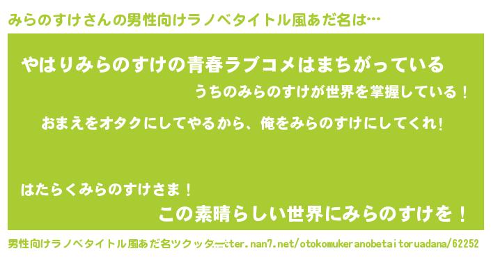 | 女子向けラノベタイトル風あだ名 | 『みらのすけ夫妻のなれそめ』 |