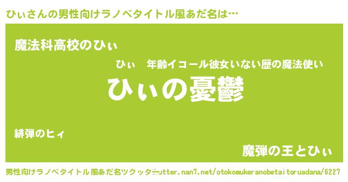 | 胡散臭い通販商品みたいなあだ名 | 『必ず成功する霊験あらたかなお札…その名も「ひぃ」』 |