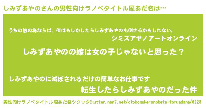 | 女子向けラノベタイトル風あだ名 | 『しみずあやの様がみてる』 |