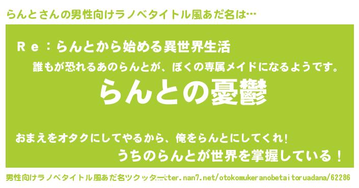 | 女子向けラノベタイトル風あだ名 | 『(仮)らんとのやんごとなき事情』 |