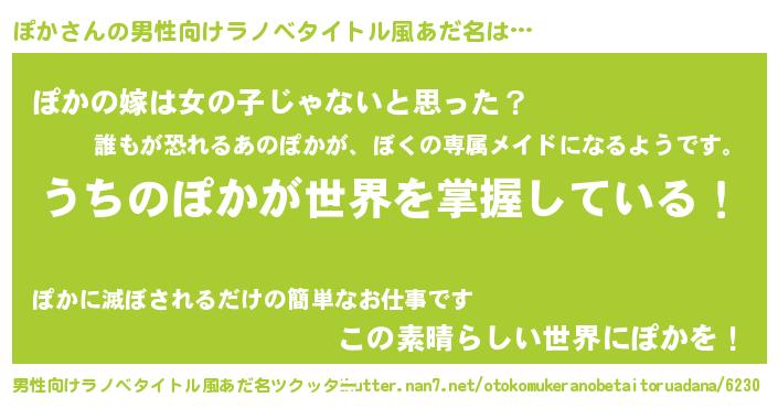 | 女子向けラノベタイトル風あだ名 | 『男装ぽかの憂鬱な任務』 |