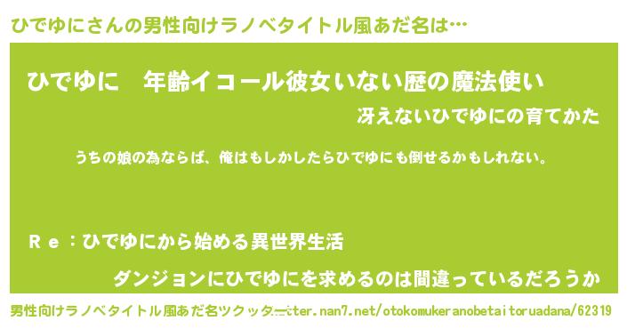| 女子向けラノベタイトル風あだ名 | 『ひでゆにの婚約者』 |