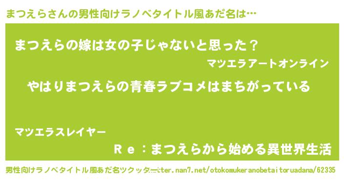 | 女子向けラノベタイトル風あだ名 | 『まつえらの雑貨屋さん』『闇のまつえら』 |