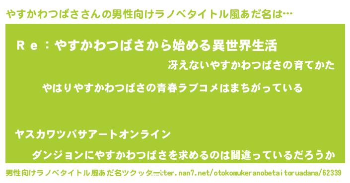 | 意味不明あだ名 | 『やすかわつばさフォーエバー』 |