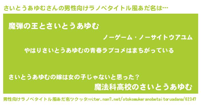 | 女子向けラノベタイトル風あだ名 | 『さいとうあゆむ伯爵の花嫁』 |