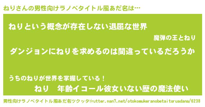 | 胡散臭い通販商品みたいなあだ名 | 『信頼と実績のサプリメント…その名も「ねり」』 |