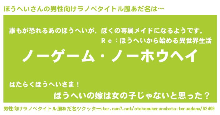| ヒーロー風カッコイイあだ名 | 『慈愛の使者ほうへい』『ネオホウヘイ』 |