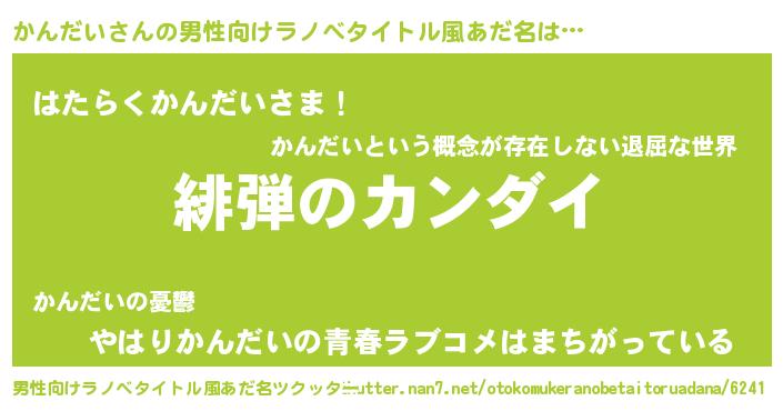 | 胡散臭い通販商品みたいなあだ名 | 『幸せが訪れる高級そうな壺…その名も「かんだい」』 |