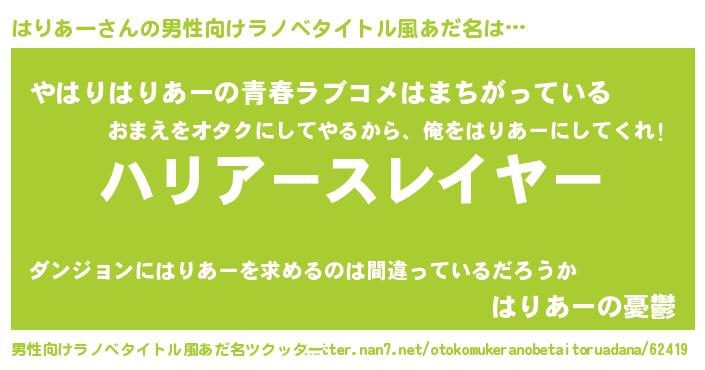 | 胡散臭い通販商品みたいなあだ名 | 『幸せが訪れる高級そうな絵画…その名も「はりあー」』 |