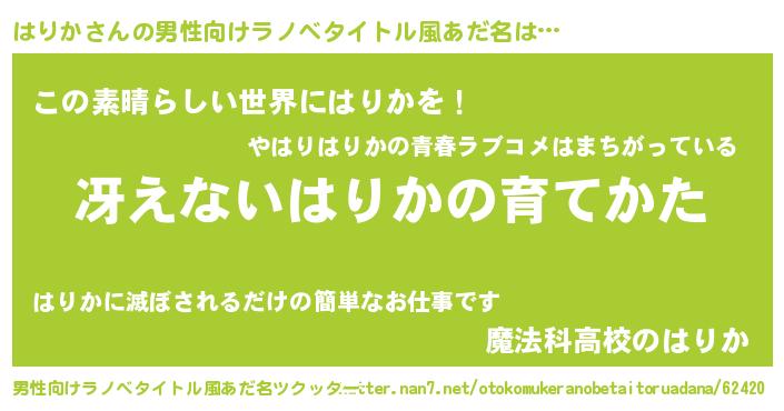 | 意味不明あだ名 | 『住所不定無職はりか(7歳)』『自称はりか』 |