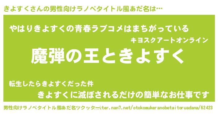 | 女子向けラノベタイトル風あだ名 | 『きよすくが死なない童話 林檎のきよすくの診療簿』 |