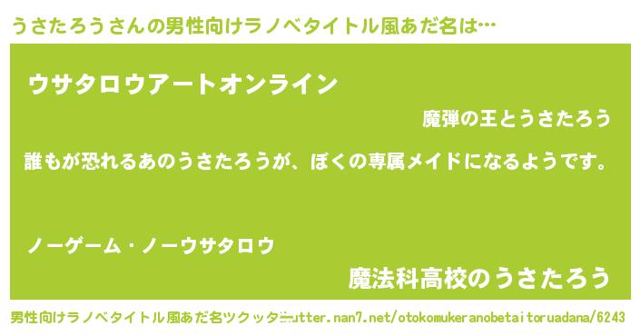 | 意味不明あだ名 | 『永久保存うさたろう』『自称うさたろう』 |