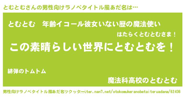 | 胡散臭い通販商品みたいなあだ名 | 『あなたにだけ特別に提供する世界で10本だけ現存している希少なブランデー…その名も「とむとむ」』 |