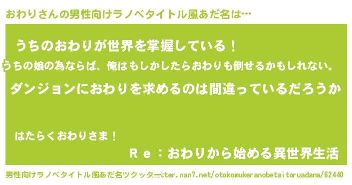 | 女子向けラノベタイトル風あだ名 | 『おわりは平凡を望む』『闇のおわり』 |