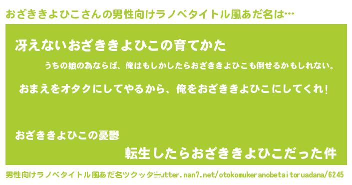 | 女子向けラノベタイトル風あだ名 | 『おざききよひこ夫妻のなれそめ』 |
