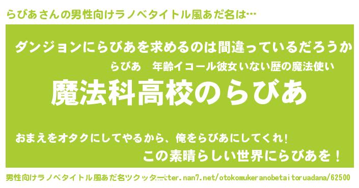 | 伝説のあだ名 | 『孤高の魔法使いらびあ』 |