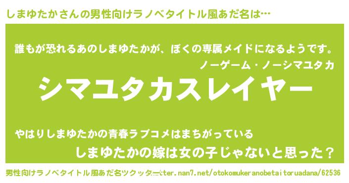 | 胡散臭い通販商品みたいなあだ名 | 『絶対に幸福をもたらす健康食品…その名も「しまゆたか」』 |
