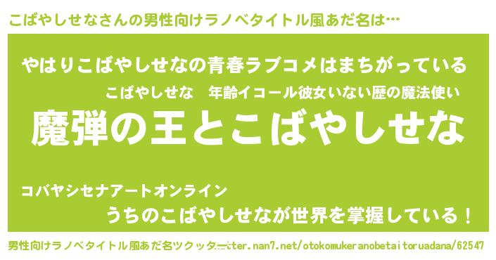 | ヒーロー風カッコイイあだ名 | 『仮面コバダー』『スーパーコバヤシセナ』 |