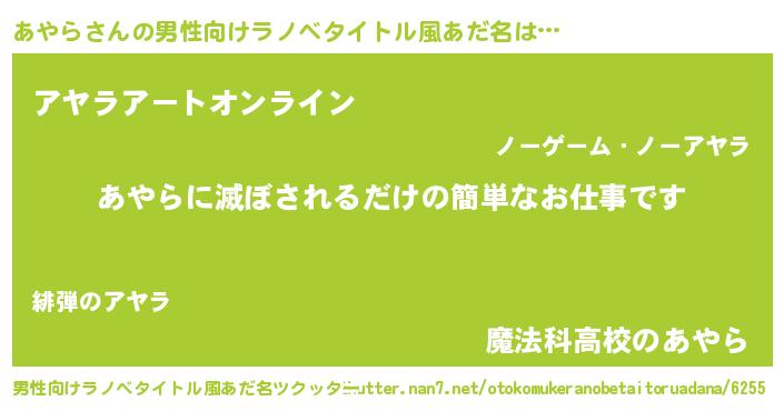 | 女子向けラノベタイトル風あだ名 | 『横柄あやらと宰相陛下』『あやら恋絵巻』 |
