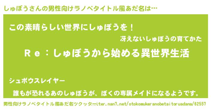 | 女子向けラノベタイトル風あだ名 | 『闇のしゅぼう』『しゅぼうの契約王妃』 |
