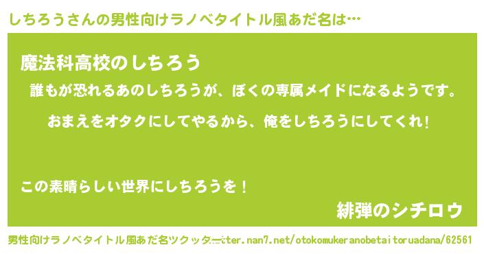 | ヘコむあだ名 | 『しちろう(遠い目)』『豆乳』 |