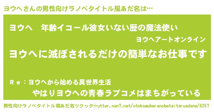 | ファンタジー風あだ名 | 『ユリヨウヴァット』『ヨウフェル』 |