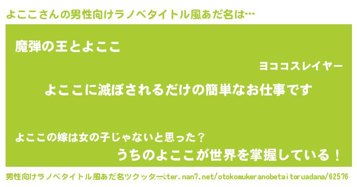 | 胡散臭い通販商品みたいなあだ名 | 『あなたにだけ特別に提供する100年もののヴィンテージワイン…その名も「よここ」』 |