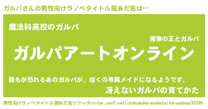 | 意味不明あだ名 | 『ペロリンガルパ』『自称ガルパ』 |