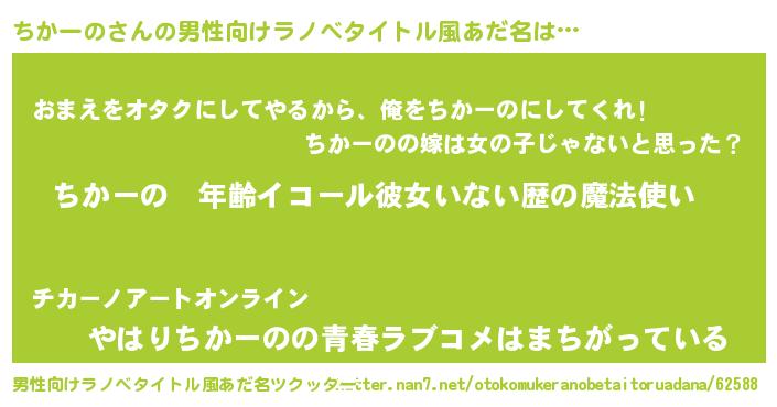 | ヒーロー風カッコイイあだ名 | 『慈愛の使者ちかーの』『天弓騎士チカ』 |