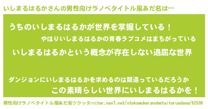 | 女子向けラノベタイトル風あだ名 | 『異世界で失敗しない100のいしまるはるか』 |