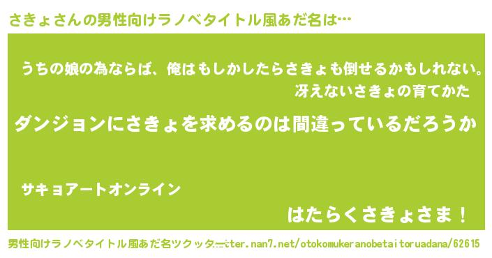 | 意味不明あだ名 | 『とにかく怪しいさきょ』『自称さきょ』 |