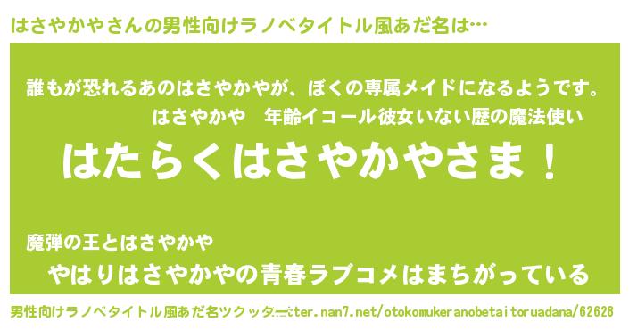 | 意味不明あだ名 | 『永久保存はさやかや』 |